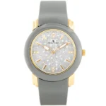 A kifinomult, mindennapi viseletre tervezett női karóra japán MIYOTA kvarc szerkezettel gondoskodik a pontos időről. Antiallergén IPS bevonatú, arany-szürke színű tokozása és csillámos ezüst számlapja cirkónia indexekkel vonzza a tekintetet, miközben a puha szürke szilikon szíj maximális kényelmet kínál.