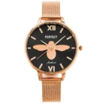 Lépj be a nőies elegancia világába ezzel a rosegold színű, fém karkötős karórával, amely fekete számlapján látványos rózsaarany szitakötő díszítést hordoz. A japán quartz szerkezet pontos időmérést garantál, a nikkelmentes IPS bevonat pedig bőrbarát viseletet kínál a legérzékenyebb csuklók számára is.