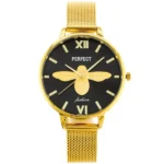 A japán kvarc szerkezetű óra arany fém szíjával és fekete, szitakötős számlapjával elegáns karaktert ad minden öltözékhez, miközben nikkelmentes IPS bevonata óvja a bőrt az irritációtól. WR30 vízállósága, karcálló minerál üvege és állítható csatja gondoskodik a kényelmes, gondtalan viselésről akár egész nap.