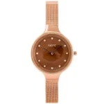Az elegáns rosegold fémszíj és a gyöngyházfényű barna számlap cirkónia indexekkel azonnal feldobja megjelenésed. A pontos MIYOTA kvarc szerkezet és a WR30 fröccsenésállóság gondoskodik a gondtalan, mindennapi használatról.
