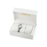 Szeretnél egy elegáns, mégis fiatalos karórát, amely tökéletes elsőáldozási vagy bérmálási ajándék? A Pacific ZY672B női ajándékszettben egy gyönyörű ezüstszínű karóra és egy szív medálos csuklólánc kapott helyet, stílusos fehér díszdobozban.