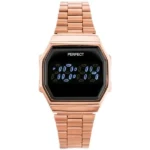 Könnyen leolvasható LED kijelzőjén egyszerre követheted az időt és a dátumot, így minden pillanatban naprakész maradsz. A rozéarany, antiallergén fém szíj, a szögletes minimalista forma és a WR30 cseppállóság elegáns, mégis praktikus kiegészítővé teszi bármelyik outfitedet.