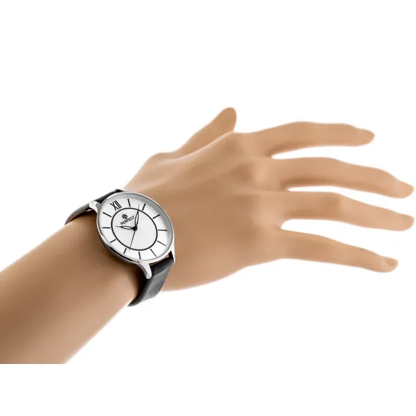 Perfect E346-2 női kvarc karóra, fekete bőrszíj, ezüst tok