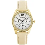 Az aranytok és a bézs bőrszíj harmonikus párosa elegáns, nőies megjelenést kölcsönöz bármely szettnek. A japán Miyota szerkezet és az ásványi üveg tartós, megbízható működést biztosít, így hosszú ideig élvezheted kedvenc kiegészítődet.
