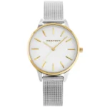 A vékony, 34 mm-es tokba épített japán Miyota kvarc szerkezet megbízható pontosságot, az ezüst/arany színvilág és a fémszíj pedig elegáns megjelenést ad, miközben a 30 m vízállóság és az ásványi üveg a hétköznapi strapát is bírja. Díszdobozban érkezik, így azonnal átadható ajándékba.