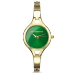 Az RB.2216S-08M Roccobarocco női karóra elegáns aranyszínű nemesacél tokkal és karkötővel készül, így tökéletes kiegészítője az üzleti megjelenésnek és az esti alkalmaknak egyaránt. A zöld számlapon arany indexek emelik ki a klasszikus vonalvezetést, míg a megbízható kvarc szerkezet pontos időmérést biztosít.
