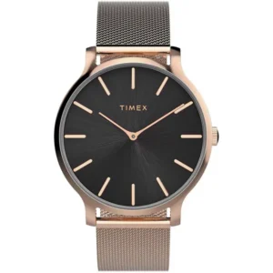 A Timex Transcend TW2W19600 női karóra stílusos rózsaarany nemesacél házával és fekete számlapjával időtálló kiegészítő, amely bármely öltözéket feldob.