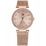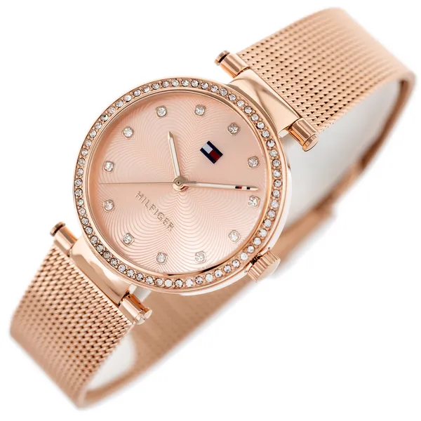 Dobd fel megjelenésedet a Tommy Hilfiger Lynn 1781865 női karórával, amely a kifinomult rózsaarany árnyalatot kristályok ragyogásával ötvözi. A masszív, rozsdamentes acélból készült 32 mm-es tok és a keskeny, 11 mm-es szíj elegáns, mégis tartós viseletet biztosít. Pontos, kevés karbantartást igénylő kvarc szerkezete megbízható társ a mindennapokban, míg az ásványi üveg védi a számlapot a karcolásoktól. 30 m (WR30) vízállóságának köszönhetően a cseppállóság sem jelent problémát, így a karóra bátran viselhető kézmosáskor vagy esőben is.