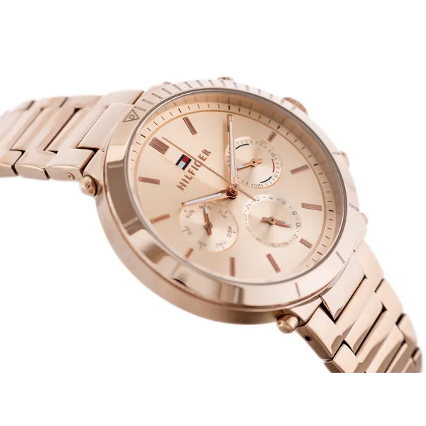 A Tommy Hilfiger Emery 1782347 női karóra a letisztult amerikai eleganciát ötvözi a praktikus funkciókkal. Rozéarany, nemesacél tokja és láncszíja tartós, bőrbarát viseletet kínál, miközben könnyedén feldobja az öltözékedet – legyen szó irodai napról vagy esti programról.