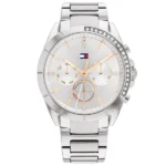 A Tommy Hilfiger Kennedy női karóra az amerikai divatház letisztult stílusát és a modern funkciókat egyesíti. A napfénymintás ezüst számlap rózsaarany indexekkel és kristályokkal díszített lünetta ragyogó, ugyanakkor kifinomult külsőt biztosít.