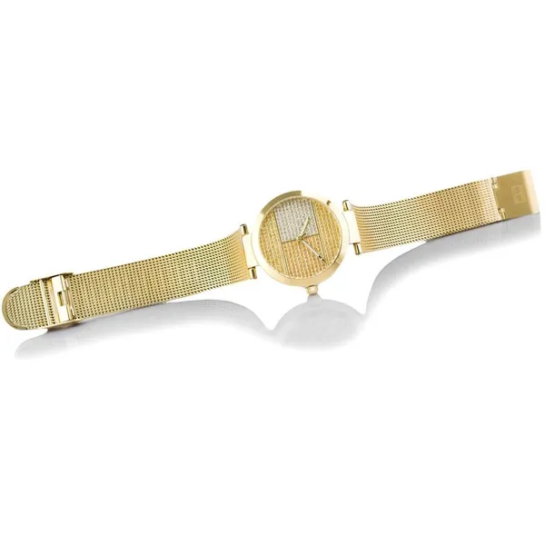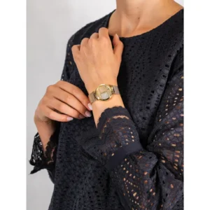 A kifinomult aranyszínű rozsdamentes acél órával stílusosan tarthatod szemmel az időt, miközben a cirkóniával díszített számlap ékszerként ragyog a csuklódon. Kvarc pontosság, 3 ATM fröccsenés elleni védelem és elegáns díszdoboz teszi ajándékká is.