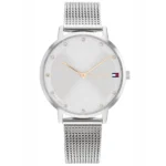 A Tommy Hilfiger Pippa 1782665 női karóra finom eleganciájával és megbízható kvarc szerkezetével tökéletes kiegészítője a mindennapoknak és az alkalmi megjelenésnek egyaránt. A 35 mm-es, kerek tok és a 16 mm széles szíj magas minőségű, ezüst színű rozsdamentes acélból készült, amelyet a mutatókon és indexeken megjelenő rozéarany tónus tesz különlegessé. A karcálló ásványi üveg megóvja a szép, ezüstszínű számlapot, a 3 ATM (WR30) vízállóság pedig ellenáll a kisebb fröccsenéseknek.