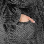Ez a plüss, sötétszürke kapucnis köntös melegen ölel át a hideg reggeleken és az esti lazításkor, amikor egy bögre tea mellett pihensz. Légáteresztő poliészter anyaga gyorsan szárad, két tágas zsebbel és állítható derékpánttal gondoskodik a kényelmedről, így bármikor puha kuckóba bújhatsz.