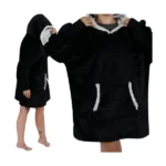A hideg napokon nincs is jobb, mint egy puha, meleg takaróba burkolózni – de miért ne viselhetné egyszerre ruhaként is? Ez a fekete, oversize flanel takaró-pulóver XXL méretben ötvözi a plüss takaró kényelmét a kapucnis pulóver praktikusságával, így fej-től lábig óvja Önt a hűvös huzattól.