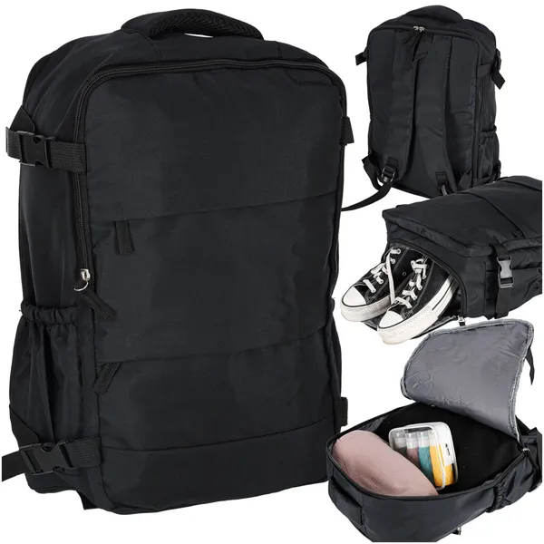 Fekete 45 l-es oxford 600D ergonomikus hátizsák reflektív csíkkal