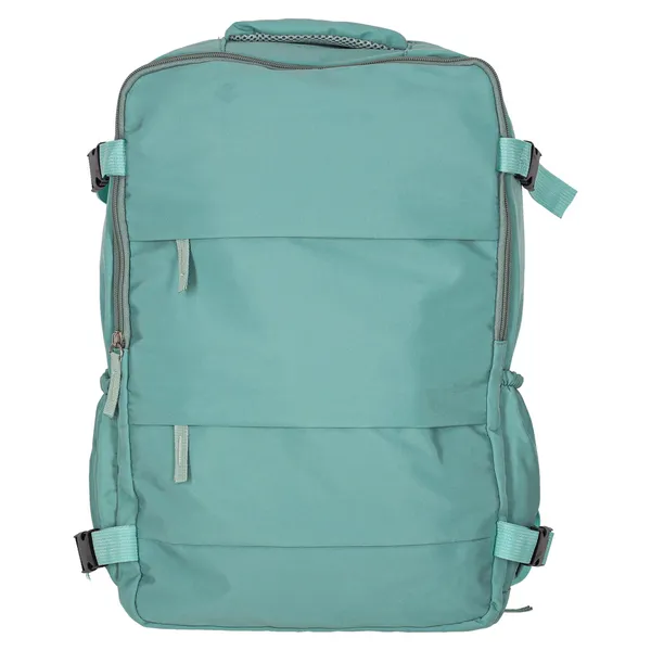Zöld utazó hátizsák 3 rekesszel, kézipoggyász méret 45×30×12,5 cm
