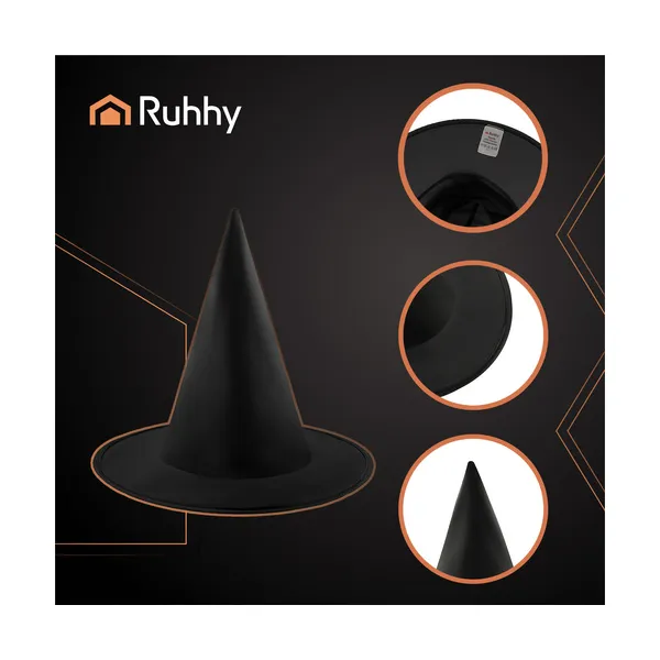Univerzális méretű, merev karimájú fekete boszorkánykalap, amely könnyű, lapra hajtható kialakításának köszönhetően kényelmesen viselhető és egyszerűen tárolható. Gépben is mosható, így több szezonon át megőrzi hibátlan, látványos formáját.