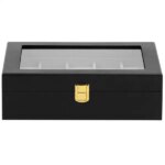 Rendezze és védje akár tíz karóráját ebben a fekete, üvegablakos óradobozban, amely puha velúr belsővel óvja a tokokat a karcolásoktól. A kompakt méretű, aranyszínű zárral záródó tároló elegáns megjelenést és gyors áttekinthetőséget kínál minden nap.