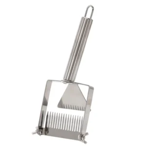 A rozsdamentes acélból készült fedelezővilla elengedhetetlen eszköz a gyors és alapos viaszbontáshoz. 25 cm hosszú, 8 cm széles fejének állítható fogai az eltérő keretméretekhez is illeszkednek, így minimális hulladékkal távolíthatod el a viaszzárat, megőrizve a lép épségét.