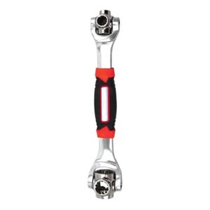 Többfunkciós, univerzális forgókulcs. Sikeresen helyettesíti számos más szerszámot! Tökéletes mindenféle anyához és csavarhoz, köszönhetően a széles távolságtartománynak (8-19 mm). Két 360 fokban forgatható, egyenként 4 furattal rendelkező fejjel rendelkezik. A kényelmes gumírozott fogantyú növeli a fogásbiztonságot és megakadályozza a kéz elfáradását. Minden barkácsolásért rajongó számára nélkülözhetetlen szerkentyű.