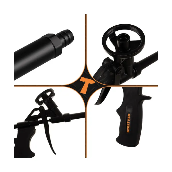 • Univerzális menetes csatlakozás a legtöbb szabványos PUR hab flakonhoz