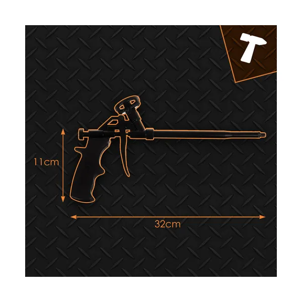 A 320 mm-es fém purhab pisztoly finombeállító gombjával pontosan adagolja a habot, ezáltal kevesebb anyagot használ és tisztább felületet hagy. Ergonomikus, csúszásmentes markolata és 260 g-os tömege révén fáradtság nélkül dolgozhat vele hosszabb ideig is.