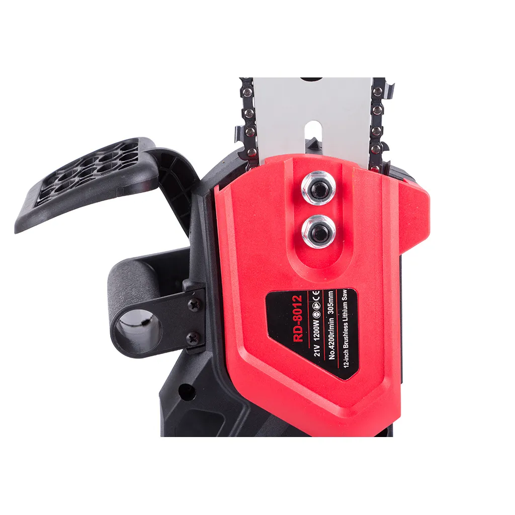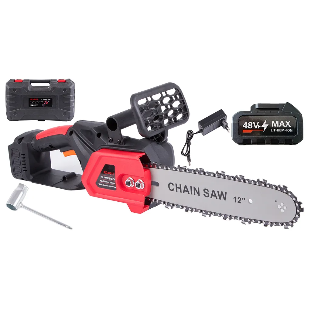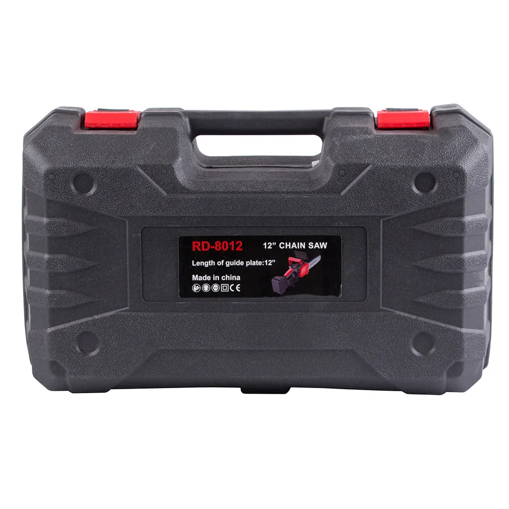 Akkumulátoros láncfűrész 31 cm pengével, tárolódobozzal, 1200W, 4200 ford/perc, 66cm x 14cm x 11,5cm, fekete-piros