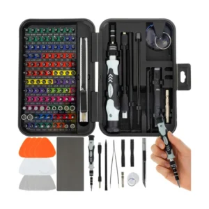 Kompakt, 133 részes precíziós csavarhúzó szett 108 CRV bittel, rugalmas hosszabbítóval és mágneses csavarpaddal, hogy telefonjaidat, laptopjaidat vagy óráidat gyorsan és hibátlanul javíthasd otthon vagy a műhelyben.