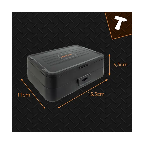 • Kompakt, erős műanyag tárolódoboz 11 × 15,5 × 6,5 cm méretben, mindössze 662 g súllyal.