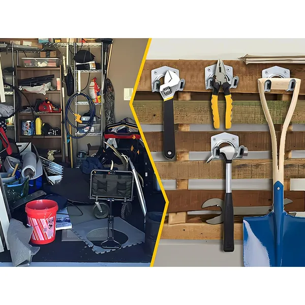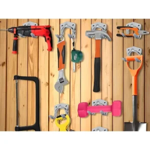 • Univerzális felhasználás – slagok, gereblyék, kéziszerszámok, vezetékek vagy sporteszközök stabil tárolására.