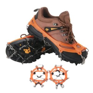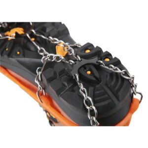 Rugalmas, csúszásmentes cipőre húzható tüskés (láncos) talpbetétek, fém tüskékkel felszerelve! Kiválóan alkalmasak erdei és hegyi túrákra, valamint nehéz terep- és időjárási körülmények közötti túrázásra. Hatékonyan védenek a megcsúszástól és az eséstől a lánc és a 8 edzett acél kampó alkalmazásának köszönhetően. Nem fárasztják a lábakat, nagyon könnyűek! Jól illeszkednek a cipő formájához! A szilikon használatának köszönhetően több méretű cipőhöz (38-45) is igazíthatók, anélkül, hogy lecsúsznának. A termék jellemzői: