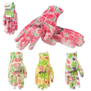 Kerti PU védőkesztyű, antisztatikus, gyümölcs mintás, 10-es, 12 pár