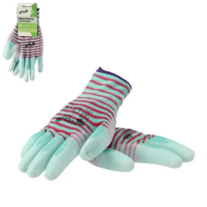 Rugalmas, zebra mintás védőkesztyű, amely megbízható fogást és vékony, mégis erős védelmet nyújt tüskék, karcolások ellen. Poliészter alapú PU bevonata tartós, kényelmes viseletet garantál hosszan tartó kerti munkákhoz.