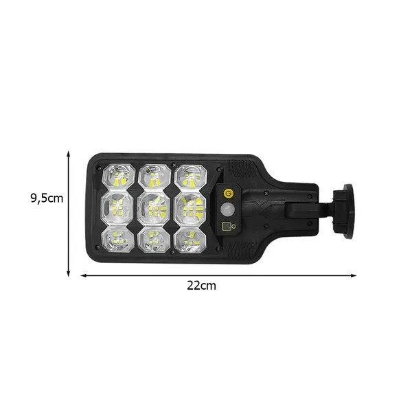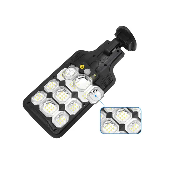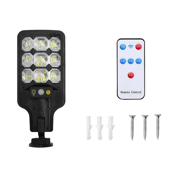 Napelemes LED lámpa 63 LED-del, mozgás- és alkonyérzékelővel, távirányító