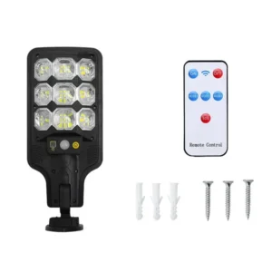 Kábelt nem igénylő, napelemes világítás, amely automatikusan reagál a mozgásra és az alkonyatra, így energiatakarékosan növeli az udvar biztonságát és kényelmét, miközben nulla üzemeltetési költséget jelent; a mellékelt távirányítóval bármikor egyszerűen válthat a három fényerő-mód között, illetve teljesen ki- vagy bekapcsolhatja a lámpát.