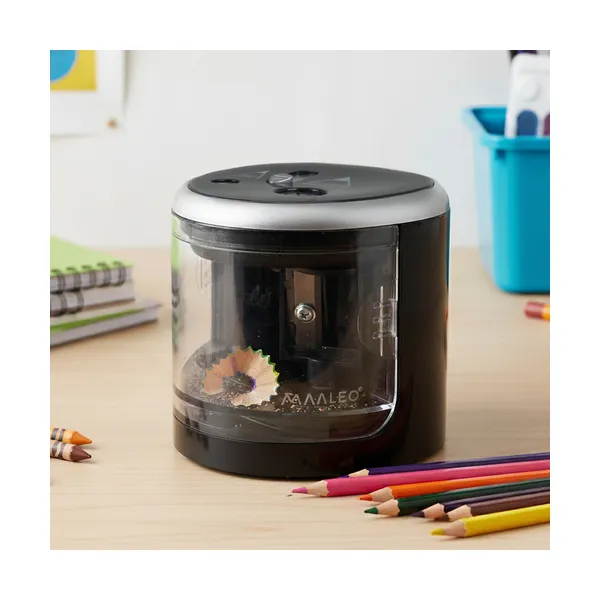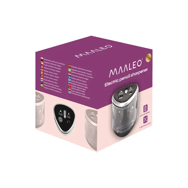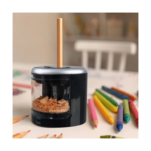 Az elemes, dupla lyukú Maaleo elektromos ceruzahegyező ideális társ az iskolában, otthon és az irodában, ha gyors, pontos és tiszta hegyezésre vágysz. A két, 6–8 mm és 9–12 mm átmérőjű nyílásnak köszönhetően vékony grafit- és vastag művészceruzákat is tökéletesen kihegyez, miközben a stabil csúszás-gátló talpak és a levehető forgácstartály rendre ügyelnek.