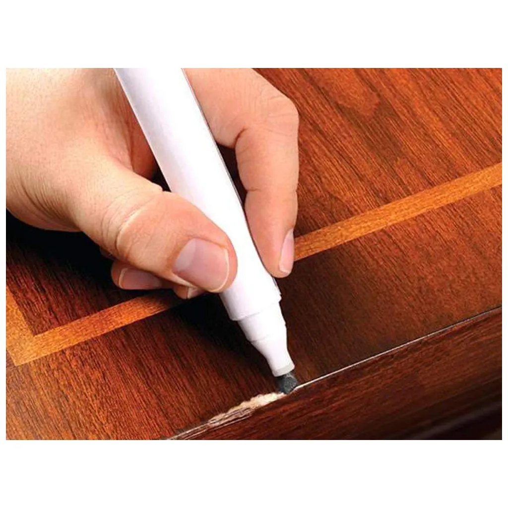 A javítás a mélyebb üregek viasszal való kitöltésével és a fa szerkezetének megfelelő színű jelölővel történő kijavításával történik. A javítókészlet felvitele után nem kell megvárnia, amíg minden megszárad. A markerek gyorsan száradnak, és a javítási területen lévő bevonat karcálló.