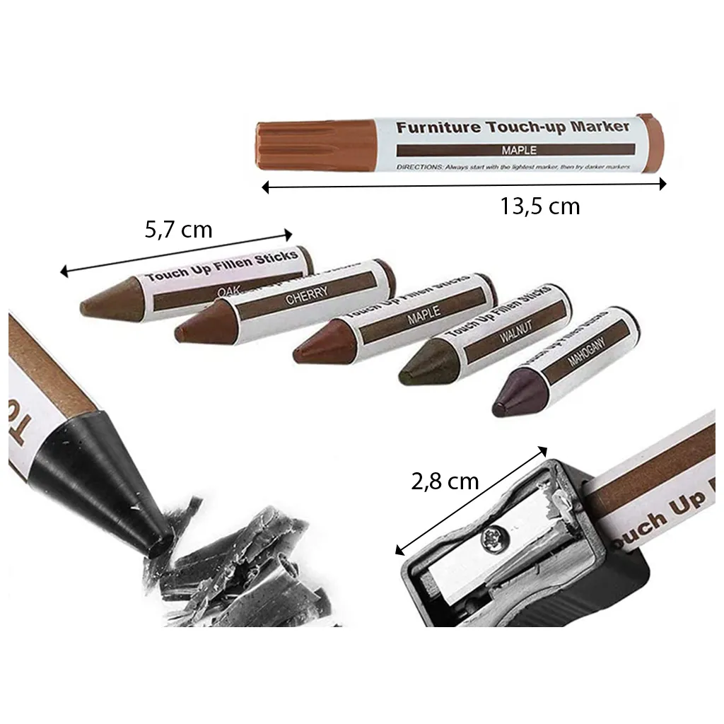 Bútorjavító viaszos filc hegyezővel, 6 db-os készlet, többféle színben