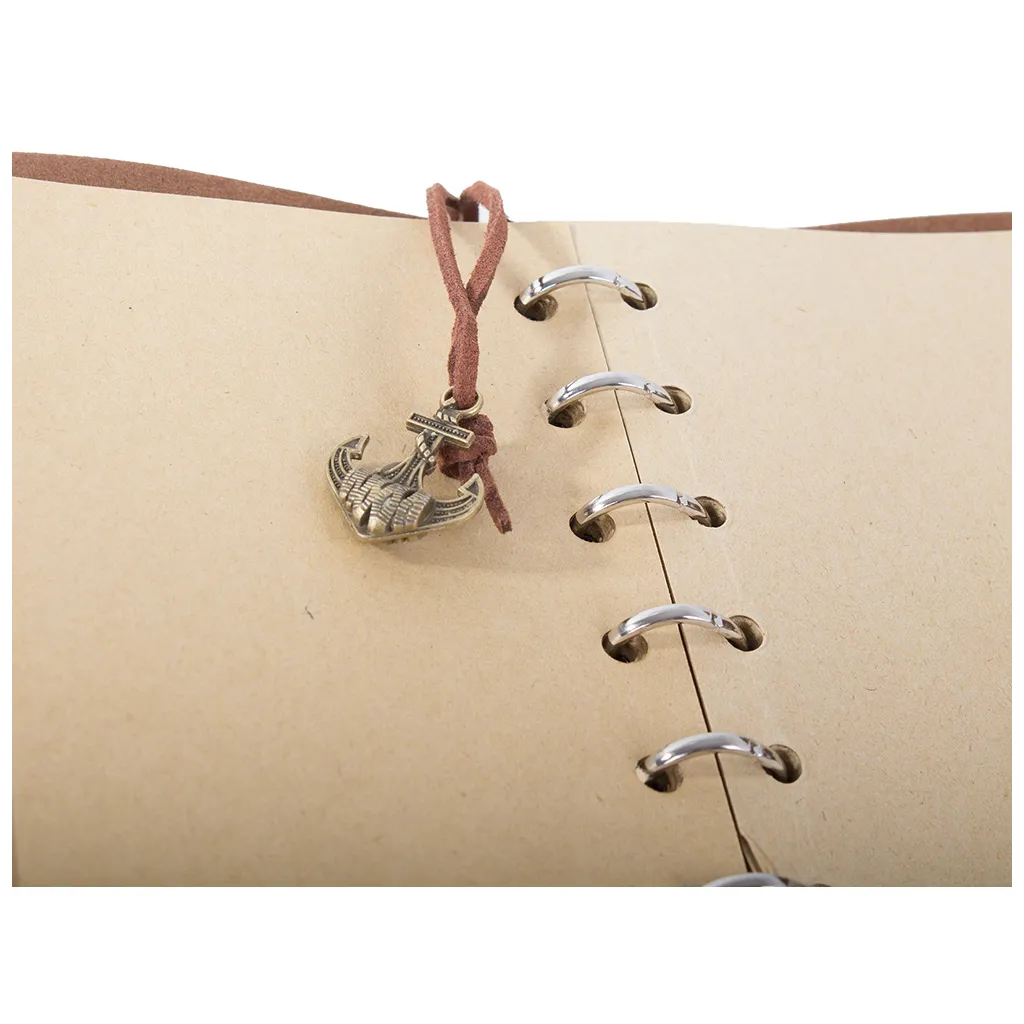 Jegyzetfüzet, napló, vintage tengerész mintás műbőr kötéssel, 10×15 cm, barna