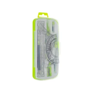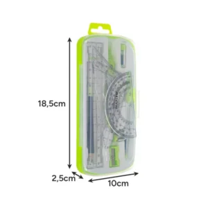 Tartós műanyag vonalzók és precíz, biztonságos körző egy kompakt tokban, hogy mindig kéznél legyen minden eszköz a pontos mérésekhez és rajzokhoz.