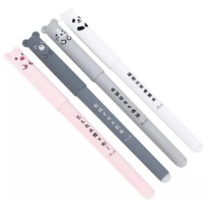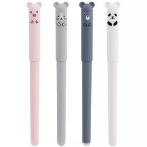 4 darabos radírozható tollkészlet gyerekeknek. A vonzó kialakítás arra ösztönzi a gyermekeket, hogy megtanuljanak írni (állatokat ábrázoló dugók). Minden toll kék tintával ír, amely a toll hátulján található radírnak köszönhetően könnyen letörölhető. Ez tökéletes megoldás a helyesírási hibák kitörlésére anélkül, hogy csúnya nyomokat hagyna a papíron.