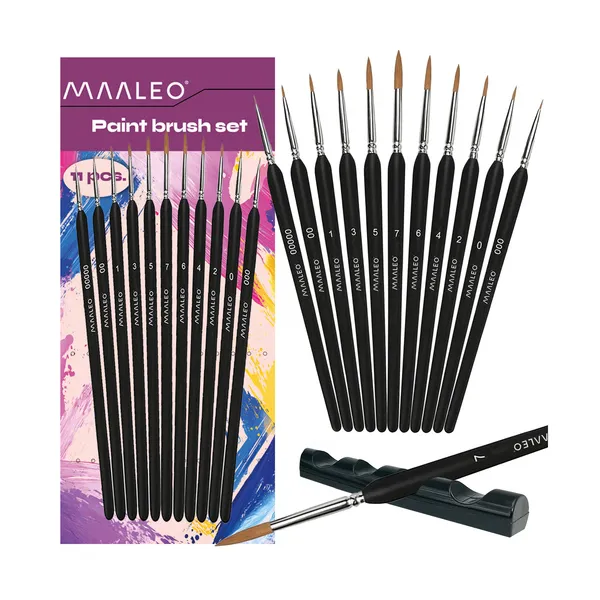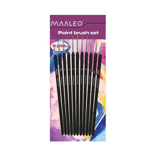 • Teljes készlet: 11 különböző méret (00000–7) a részletgazdag munkához és a nagyobb felületekhez.