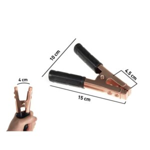 Kiváló minőségű krokodilcsipeszek, amelyek akár 400A terhelhetőséggel rendelkeznek, a Maclean Energy gyártótól, kábelre szereléshez. A csomag tartalma 2 db, fekete és piros.