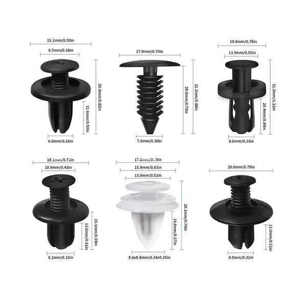 Autós műanyag patent készlet kárpit és lökhárító rögzítéséhez, 100 db