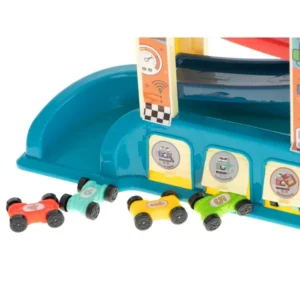 Az akár hét szintet felölelő csúszdán a mellékelt nyolc kisautó látványosan száguld, miközben gyermeked játékosan fedezi fel a sebesség és a gravitáció törvényeit. Összeszerelése egyszerű, a beépített garázs pedig segít a rend fenntartásában.