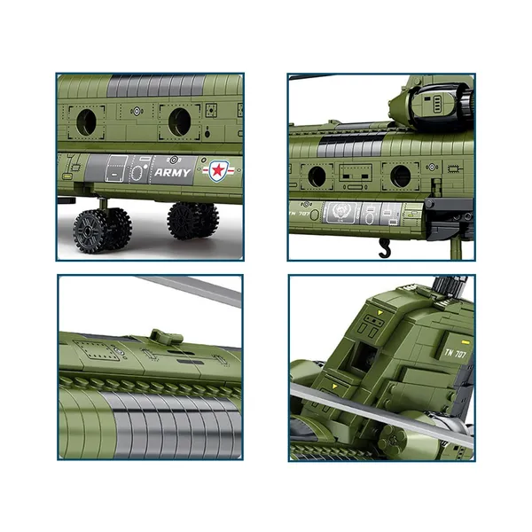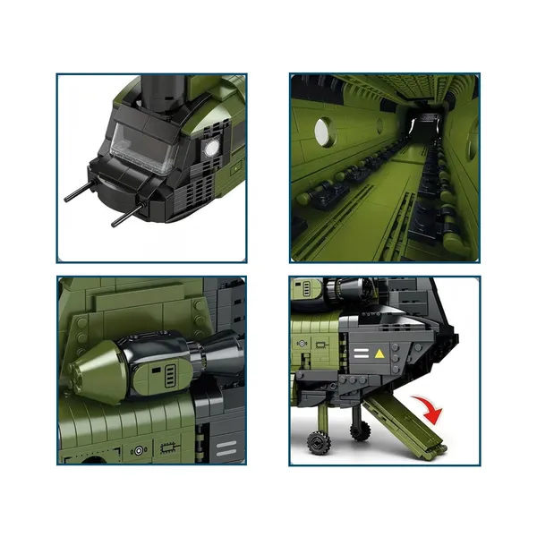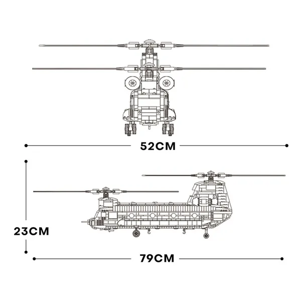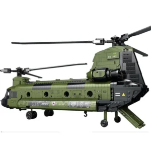 Emeld magasabb szintre az építési élményt a Reobrix CH-47 Chinook szállító helikopterrel! A 1451 elemből álló készlet segítségével egy 79 × 52 × 23 cm-es, részletgazdag modellt állíthatsz össze, amely hűen idézi meg a legendás kéttörzsű forgószárnyast.