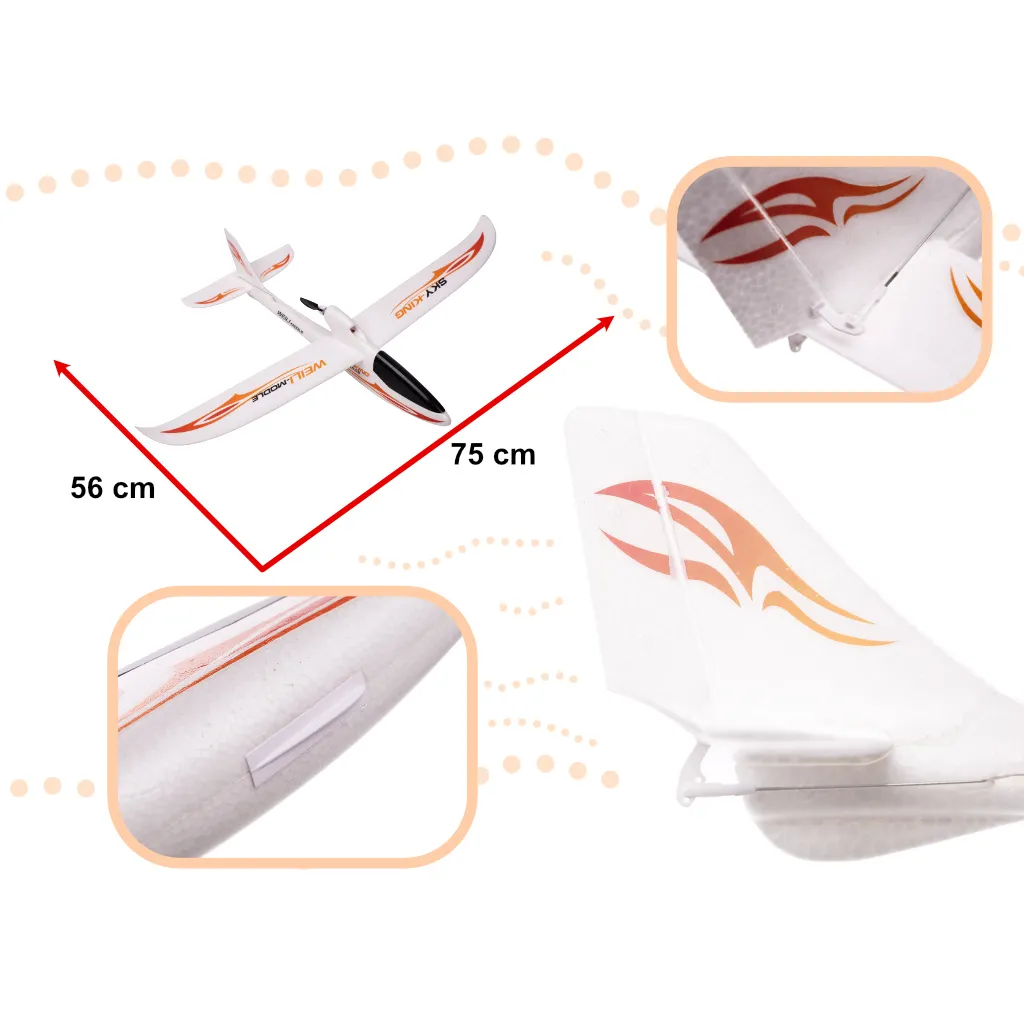 A Sky King F959S motoros vitorlázórepülő a WLtoys-tól remek választás azok számára, akik a kicsomagolás után azonnal játékra kész modellt szeretnének vásárolni. Akrobatikus mutatványokat hajthat végre a levegőben. A repülővel való játék nagyszerű lehetőséget nyújt arra, hogy élvezze a természetet. Ideális mindazok számára, akik szeretik a repülést.