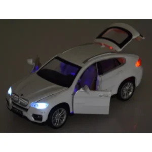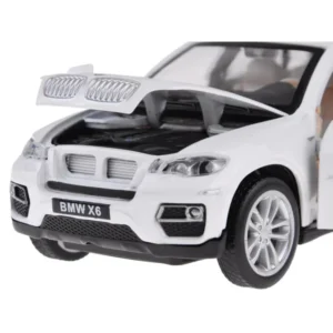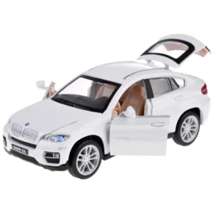A BMW X6 autó 1:32 méretarányban nagyszerű kiegészítője lesz az autómodell gyűjteményednek. A jármű nagyon gondosan és esztétikusan készült, a legapróbb részletekre is figyelve, ami biztosan elnyeri minden kis sofőr tetszését. Az autó nyitható ajtókkal, motorháztetővel és csomagtartóval rendelkezik, valamint hang- és fényhatásokkal. A BMW súrlódásos meghajtással rendelkezik, ami azt jelenti, hogy ha sima, egyenletes felületen hátrafelé tolod, előre fog gurulni. Az autó tolásra is működik.