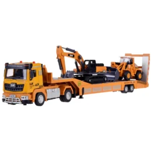 Ha gyermeked rajong a markolókért, dózerekért és hatalmas kamionokért, ez a játékkészlet tökéletes választás. A fém vázú, levehető utánfutós kamion elnyeli a terhelést, miközben a visszahúzós meghajtásnak köszönhetően nagy lendülettel gurul. A markoló és a dózer mozgatható karral, kanállal és lánctalpakkal érkezik, így a kicsik realisztikus építkezéseket rendezhetnek.