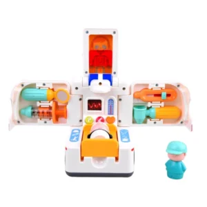 • 3 orvosi gomb: szív, fecskendő, zöld kérdőjel – a gombok egészségügyi hangokat rejtenek.